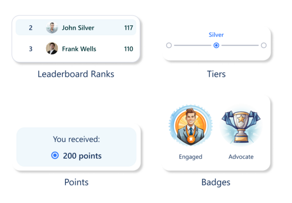 With tools like points, tiers, ranking, leaderboards, badges, as well as team challenges, you can create an irresistible experience for your program members.